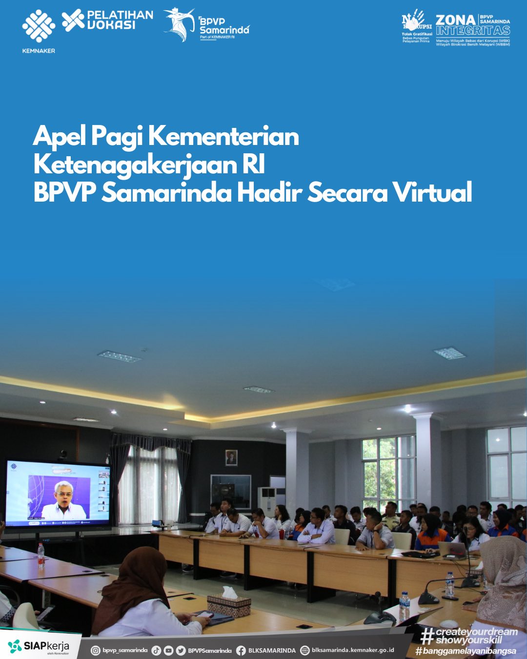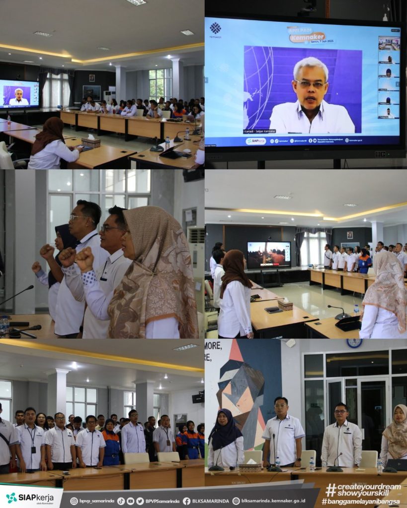 BPVP Samarinda telah mengikuti Apel Pagi Kementerian Ketenagakerjaan RI secara virtual pada Senin, 7 Juli 2025. Kegiatan ini diikuti oleh seluruh pejabat dan pegawai di lingkungan Kemnaker, dengan agenda penyampaian arahan oleh Sekretaris Jenderal Kementerian Ketenagakerjaan RI.