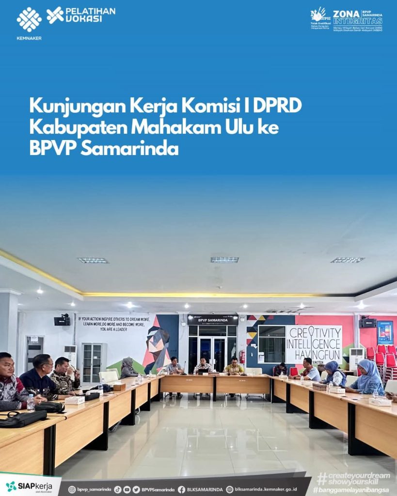 Kamis, 6 November 2025, Balai Pelatihan Vokasi dan Produktivitas (BPVP) Samarinda menerima kunjungan kerja dari Komisi I DPRD Kabupaten Mahakam ...