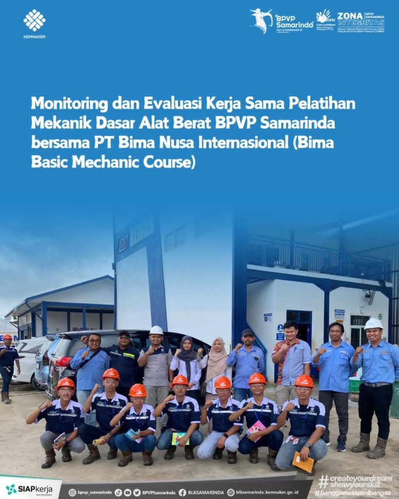 Monitoring dan Evaluasi kerja Sama Pelatihan Mekanik Dasar Alat Berat BPVP Samarinda bersama PT Bima Nusa Internasional (Basic Mechanic Course)