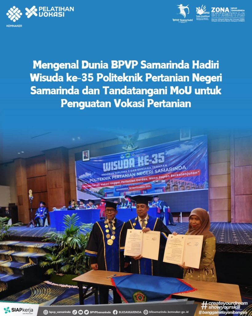 Mengenal Dunia BPVP Samarinda Hadiri Wisuda ke-35 Politeknik Pertanian Negeri Samarinda dan Tandatangani MoU Untuk Penguatan Vokasi Pertanian