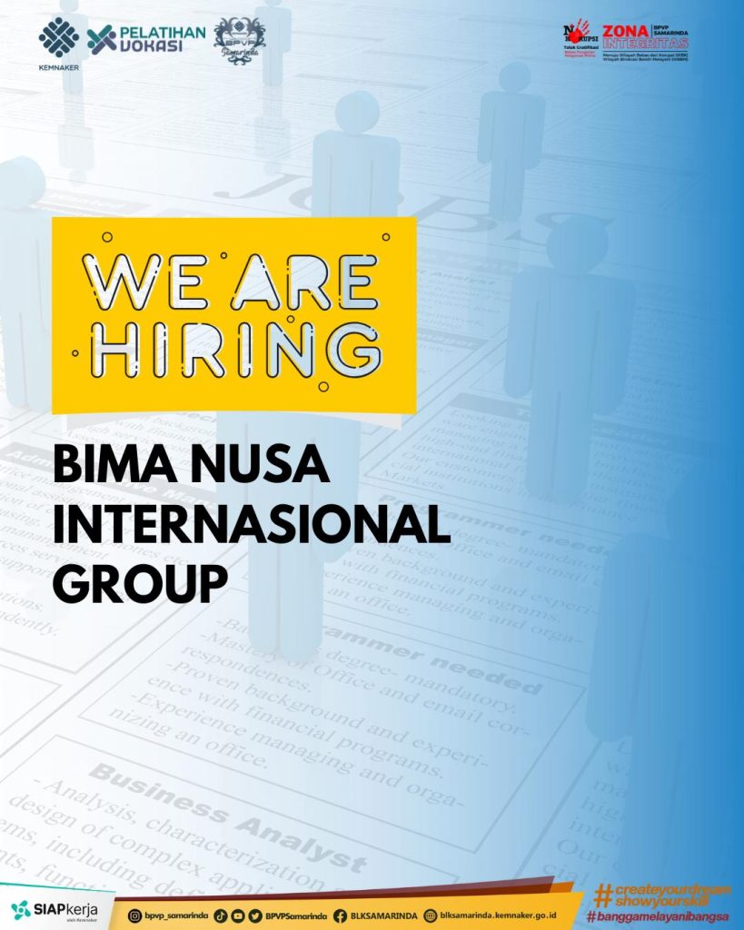 Pemberdayaan BPVP Samarinda April 22, 2025Lowongan kerja PT. Bima Nusa Internasional GroupLowongan Pekerjaan
