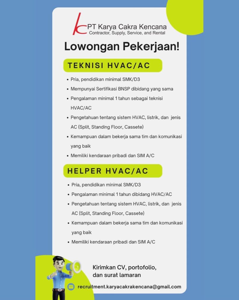 Lowongan Kerja PT. Karya Cakra KencanaOlehPemberdayaan BPVP Samarinda April 15, 2026Share:←Lowongan Kerja PT. Satria Palma Energi