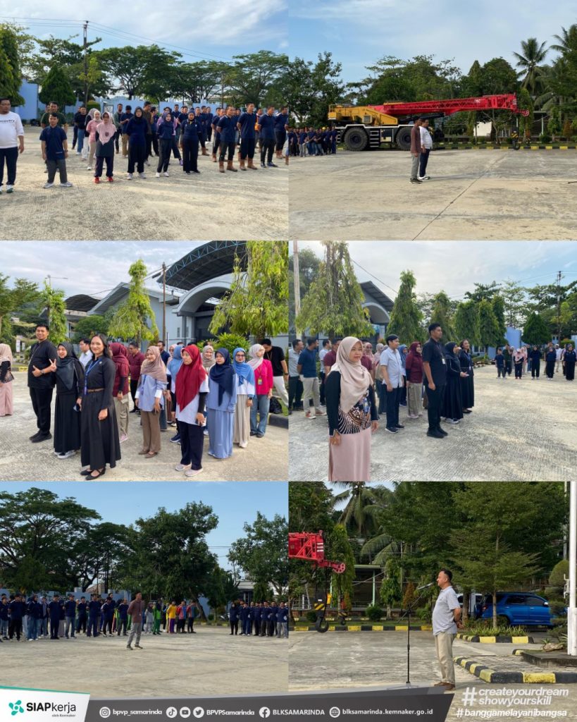 Kegiatan apel pagi menjadi wadah untuk memperkuat kedisiplinan, kebersamaan, serta komitmen dalam mewujudkan pelayanan pelatihan vokasi yang berkualitas dan berdaya saing.