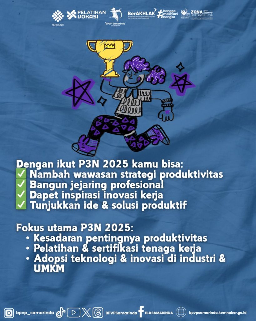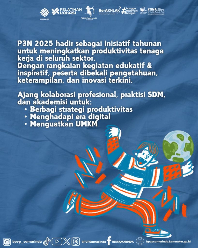 #P3N2025#PekanProduktivitasNasional#BPVPSamarinda#Kemnaker#MenujuIndonesiaProduktif#PelatihanVokasi#ASNBerAKHLAK#BanggaMelayaniBangsa#Produktivitas