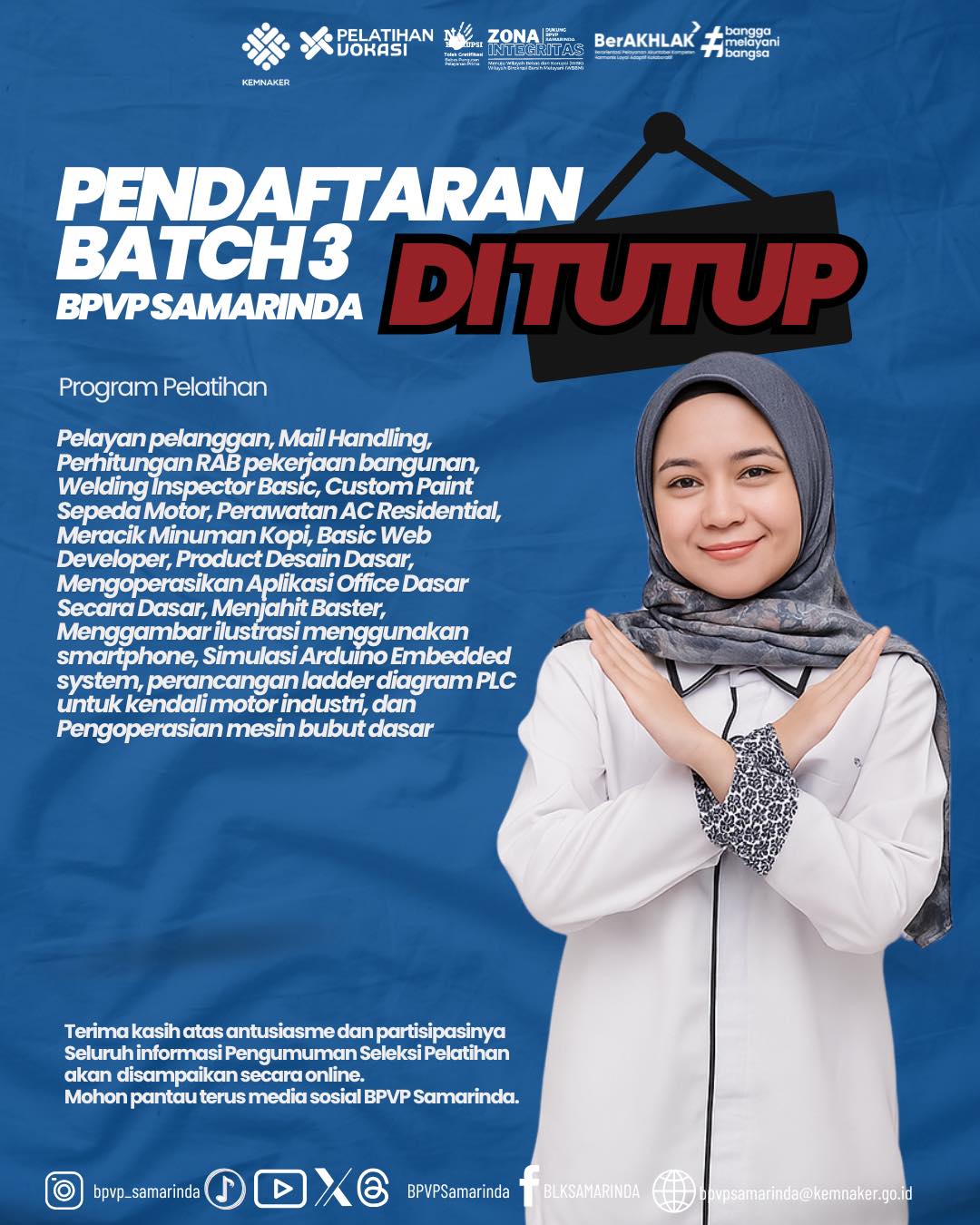 📌 Pantau terus media sosial BPVP Samarinda untuk jadwal pengumuman seleksi tertulis online.