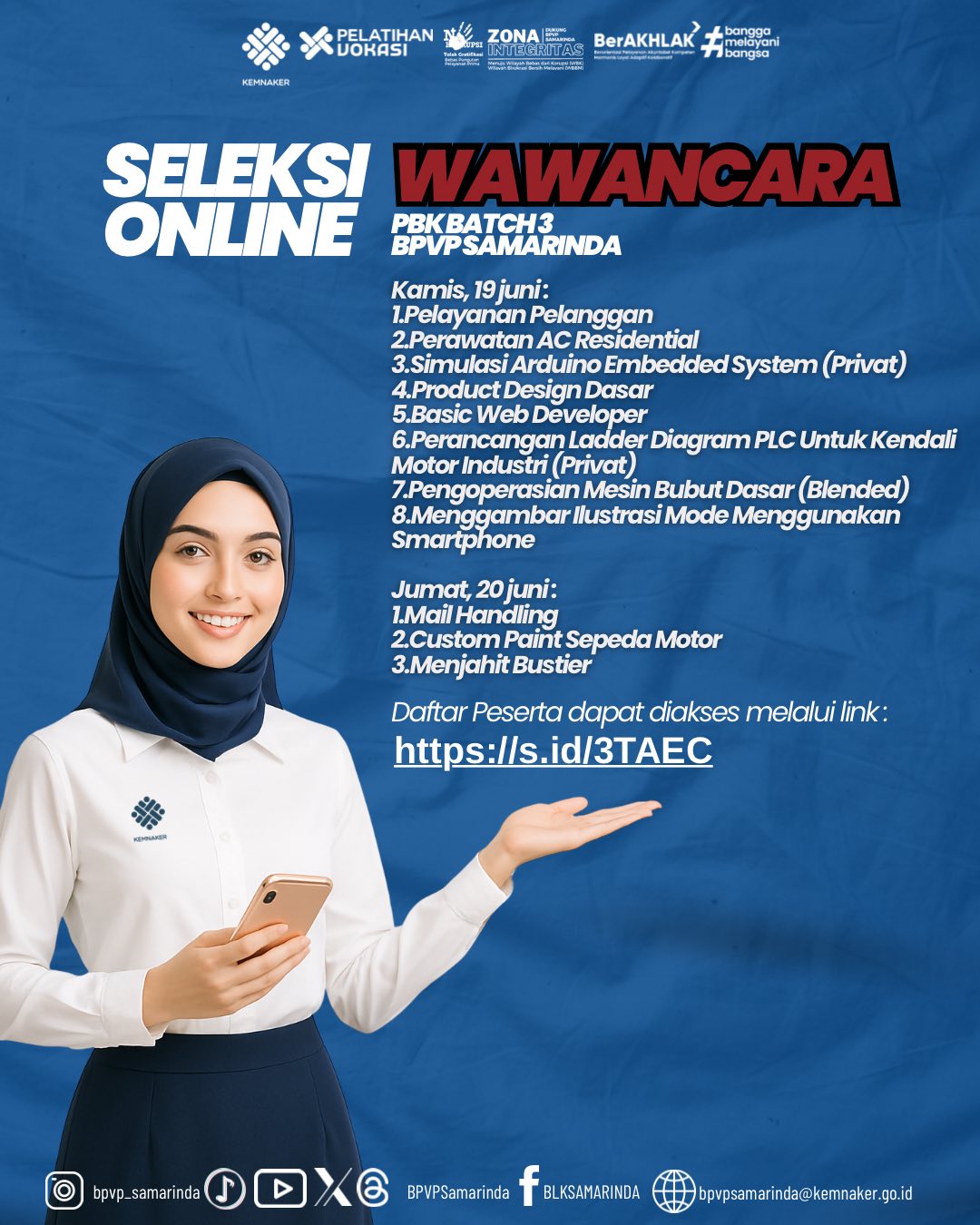 PENGUMUMAN SELEKSI WAWANCARA PESERTA PELATIHAN BPVP SAMARINDA
